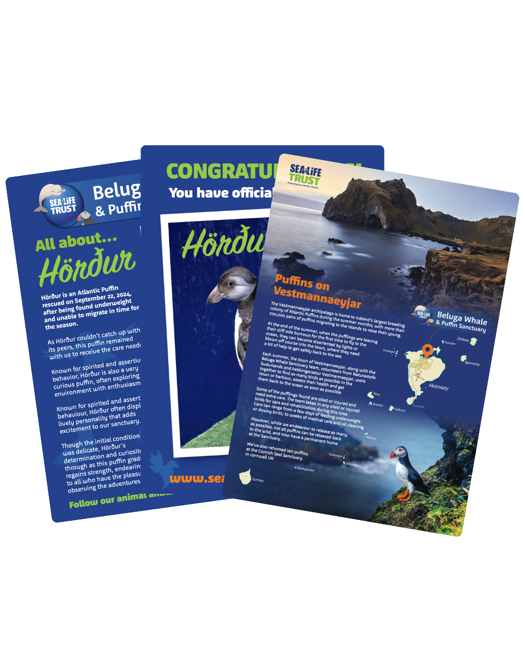 Meet Baldur, an Atlantic Puffin known for liveliness and curiosity. Rescued on September 22, 2024, due to being underweight, Baldur didn't let adversity stand in the way. This puffin's energetic nature revamps the sanctuary's surroundings and offers excitement with every step taken. Adopt Baldur and become part of a story filled with exploration and determination!