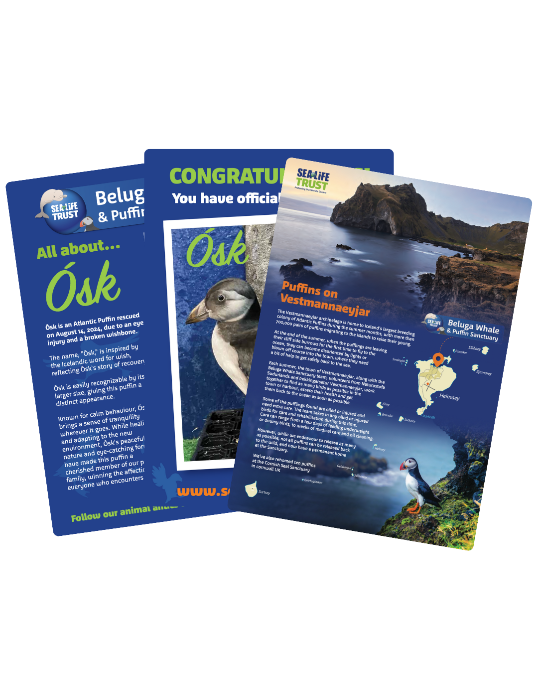 Ósk, whose name symbolizes 'wish' in Icelandic, is a peaceful and grand Atlantic Puffin rescued on August 14, 2024. Known for tranquility and a visually distinct larger frame, Ósk has captured hearts with gentle behavior. Adaptation and healing have only magnified the calm aura Ósk brings, making it a beloved sanctuary resident. Adopt Ósk and make a wish for a life filled with peace and joy!