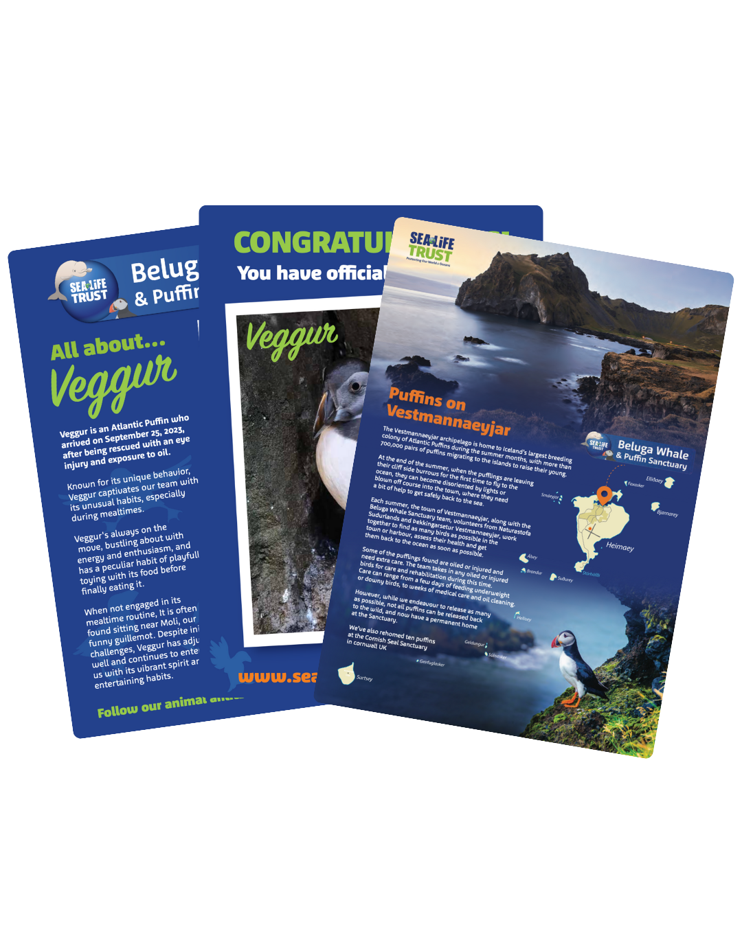 Introducing Veggur, an Atlantic Puffin with a knack for entertaining habits and a vibrant personality. Rescued on September 25, 2023, from oil exposure and an eye injury, Veggur's unique behavior captivates us daily. This puffin adds flair to mealtimes by playfully toying with food and loves spending time near Moli, our amusing guillemot. Veggur's transition has been spectacular, and its vibrant spirit is a joy to witness. Adopt Veggur and contribute to this charismatic puffin's ongoing journey!