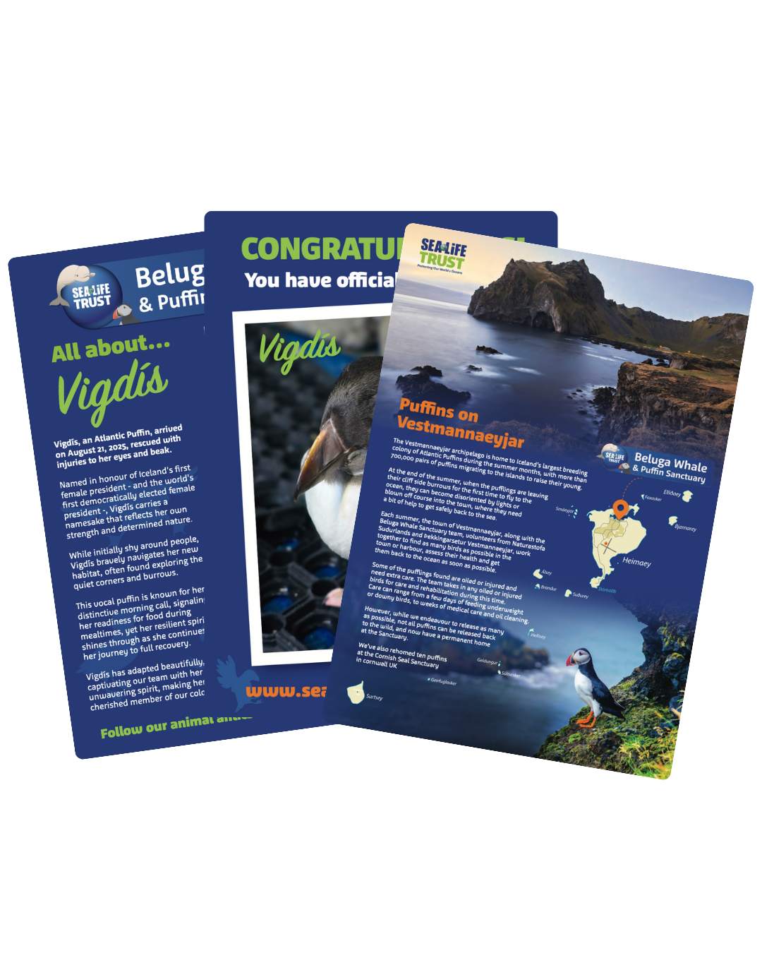 To reduce waste and protect the marine environment we work so hard to defend, our Icelandic puffin adoption packs are now digital downloads. It’s quicker, greener, and kinder to the planet...while still packed with beluga magic!