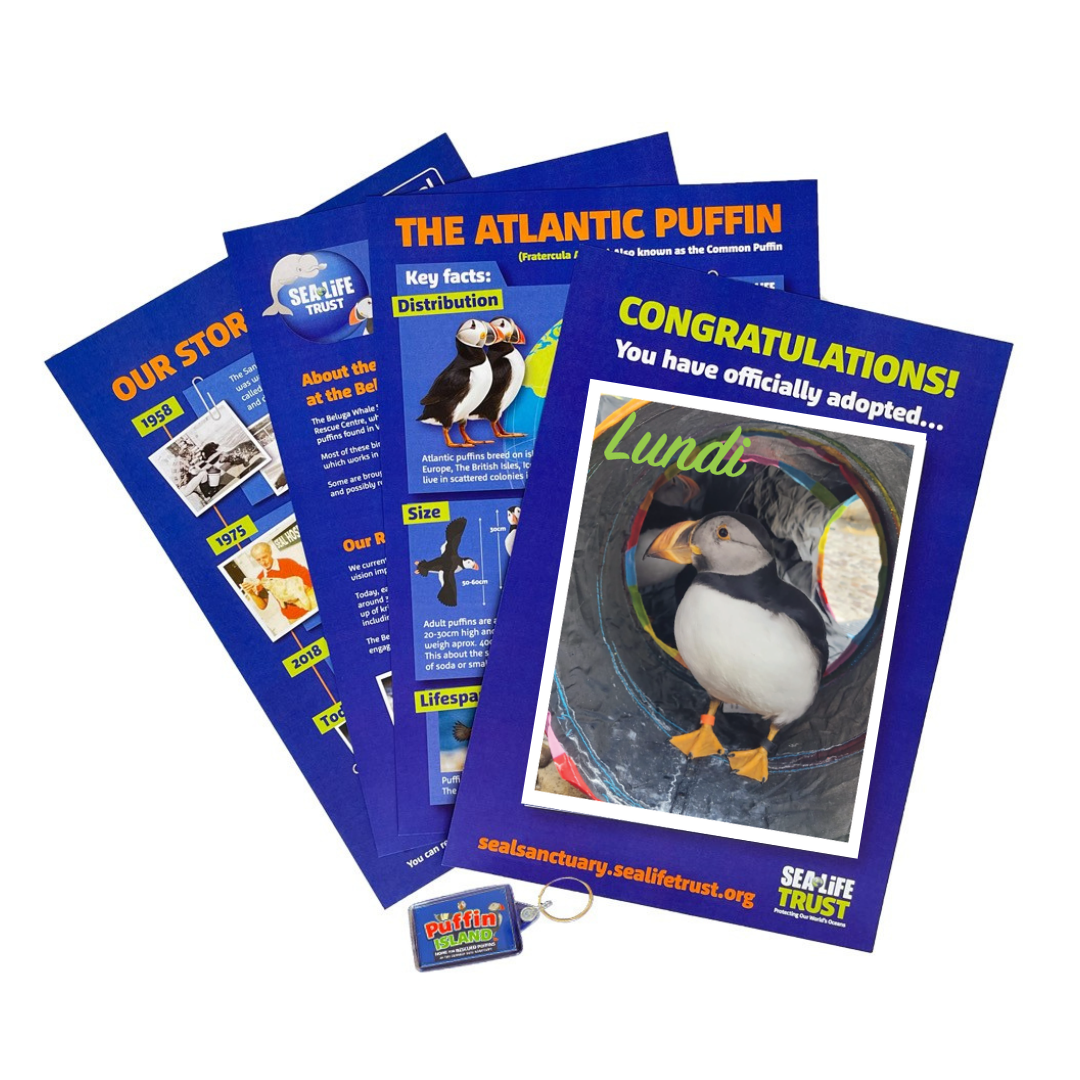 Lundi now resides at the Cornish Seal Sanctuary with our other rescued puffins.